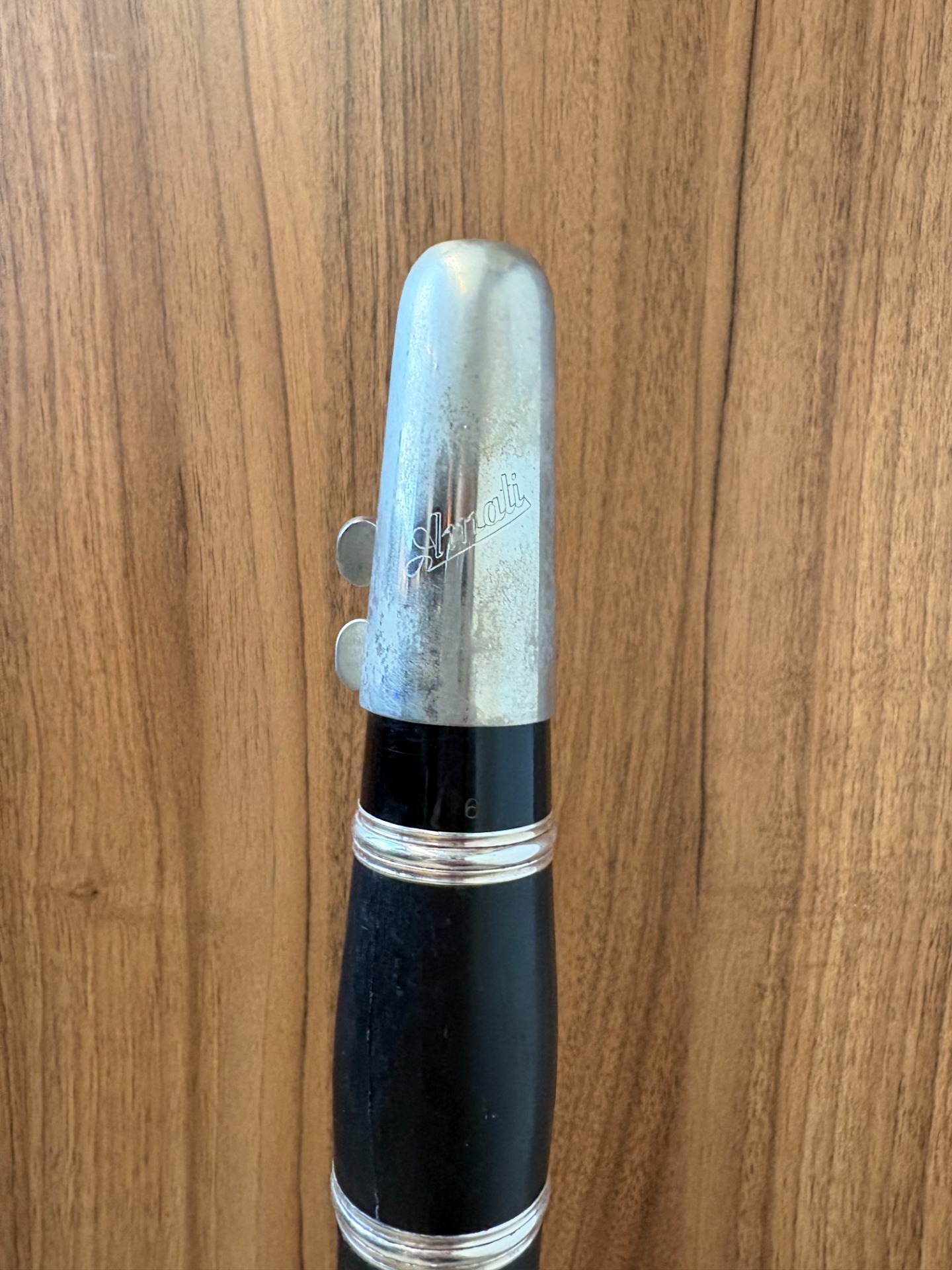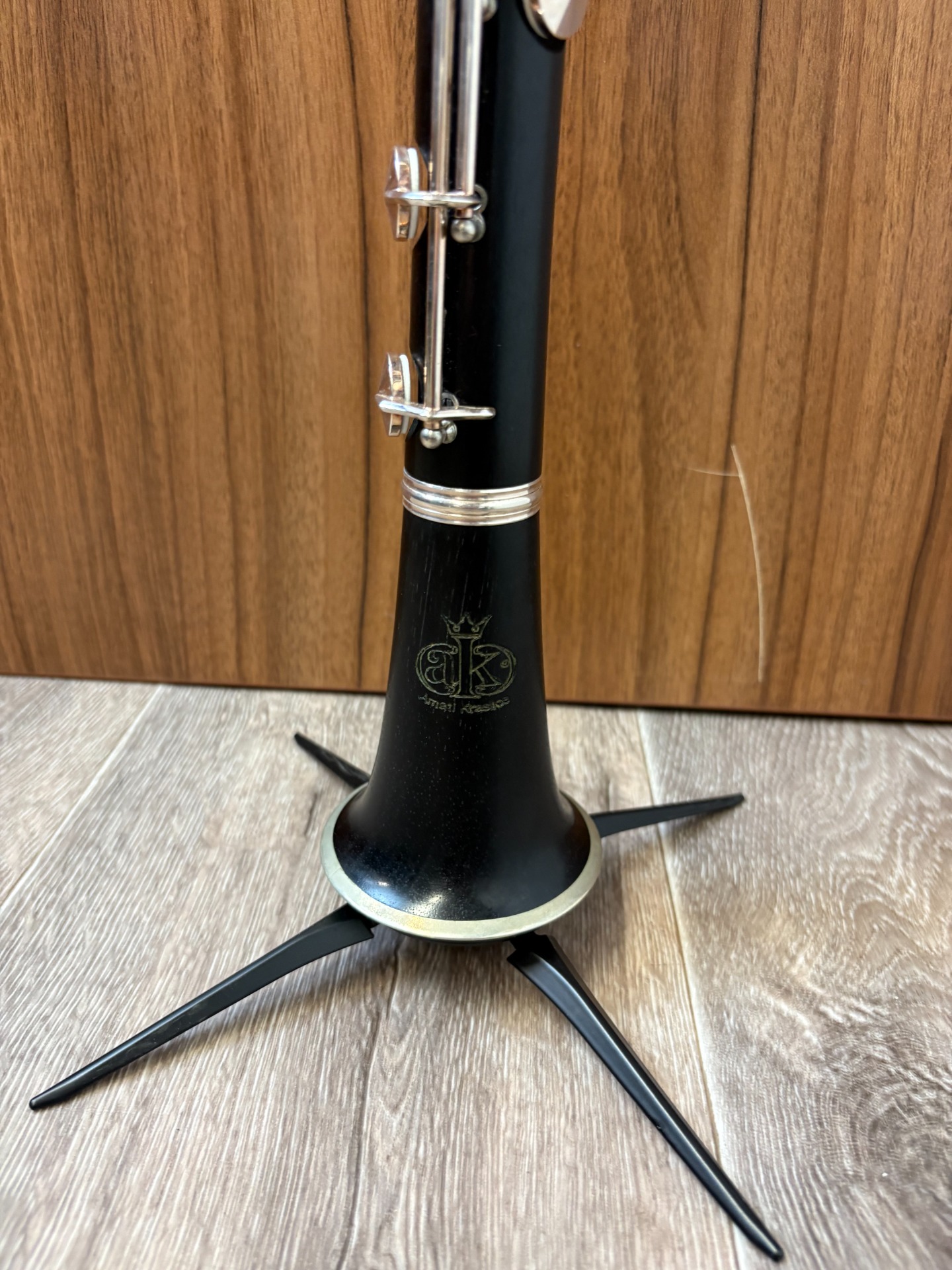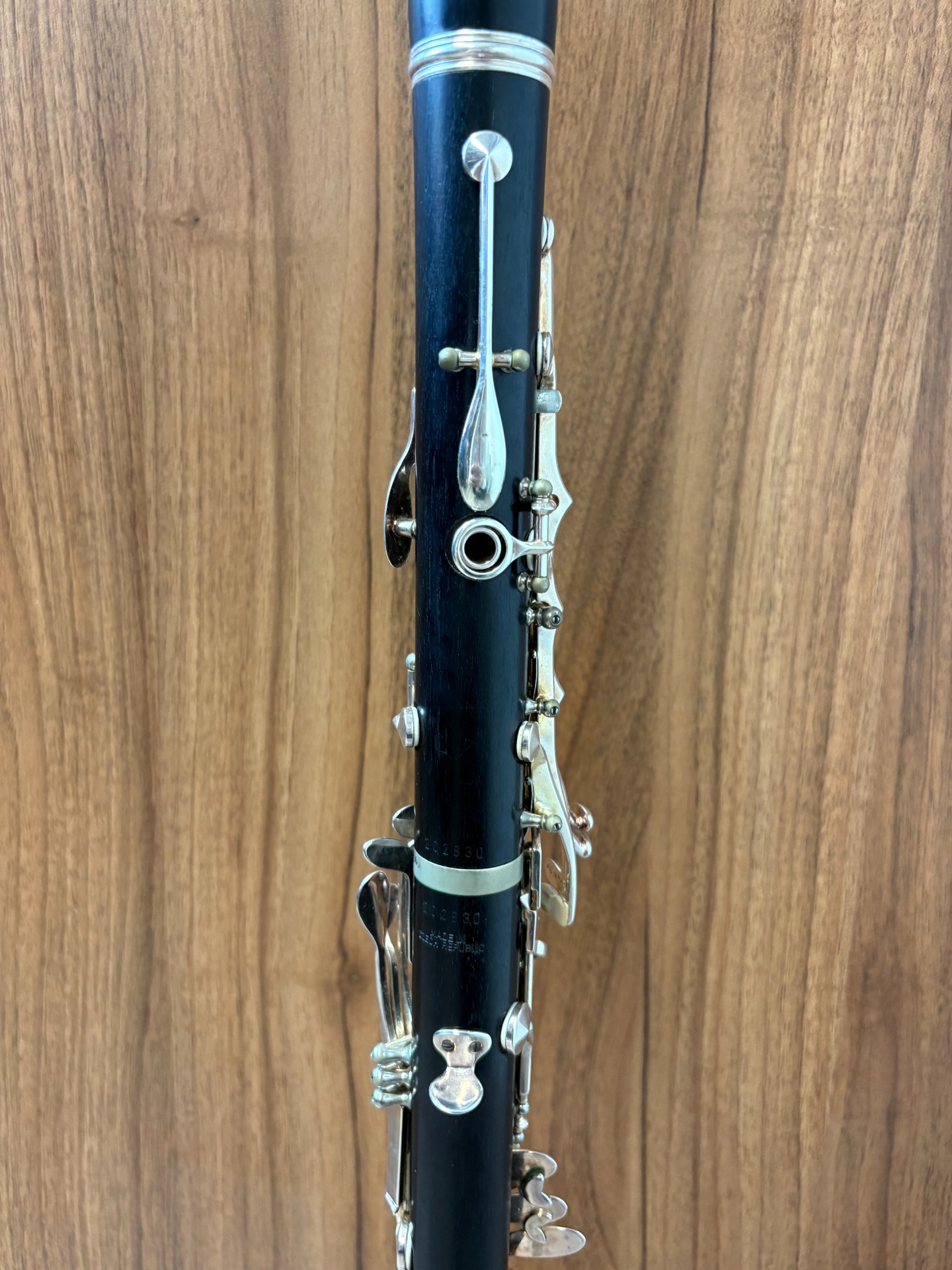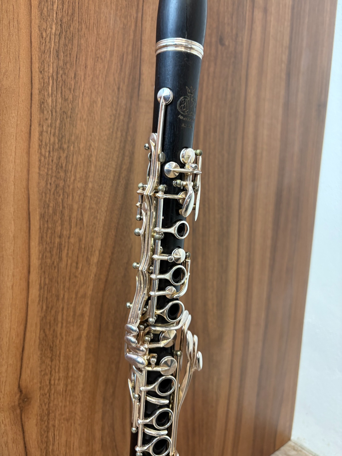 Klarinet AMATI je plnoklapkový klarinet s hlubokým Eb a nejvyšší výbavou s postříbřenou mechanikou. Nástroj je po generální opravě s koženými polštářky.