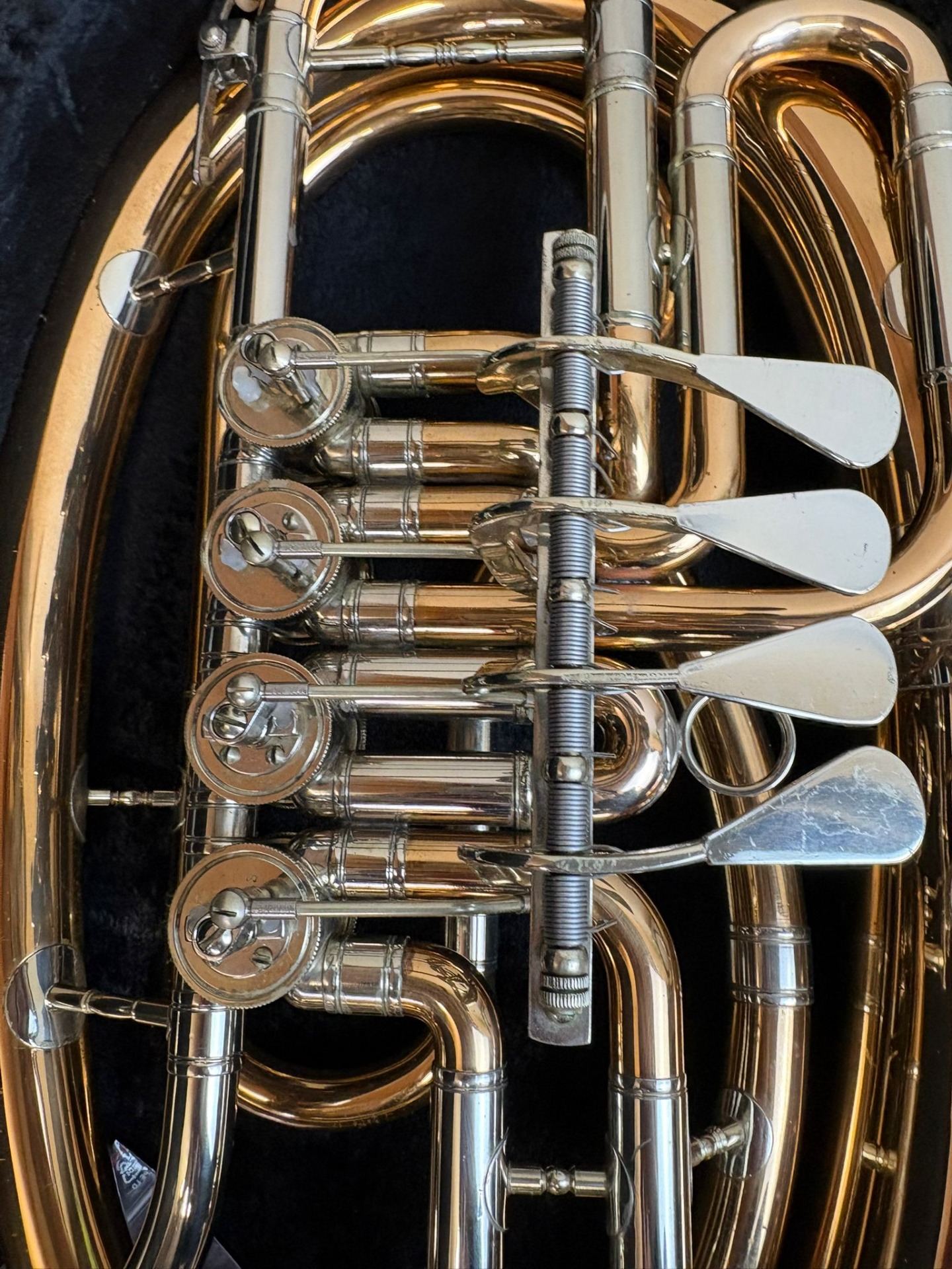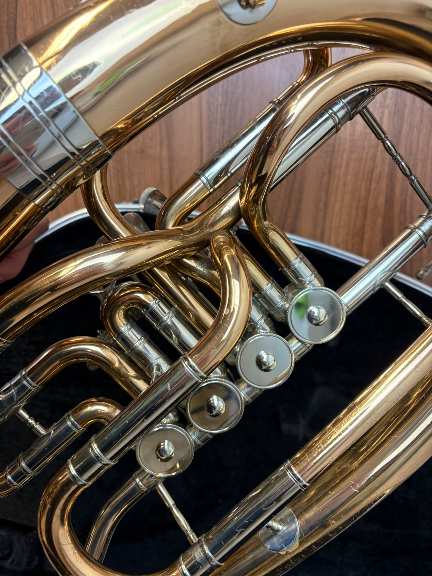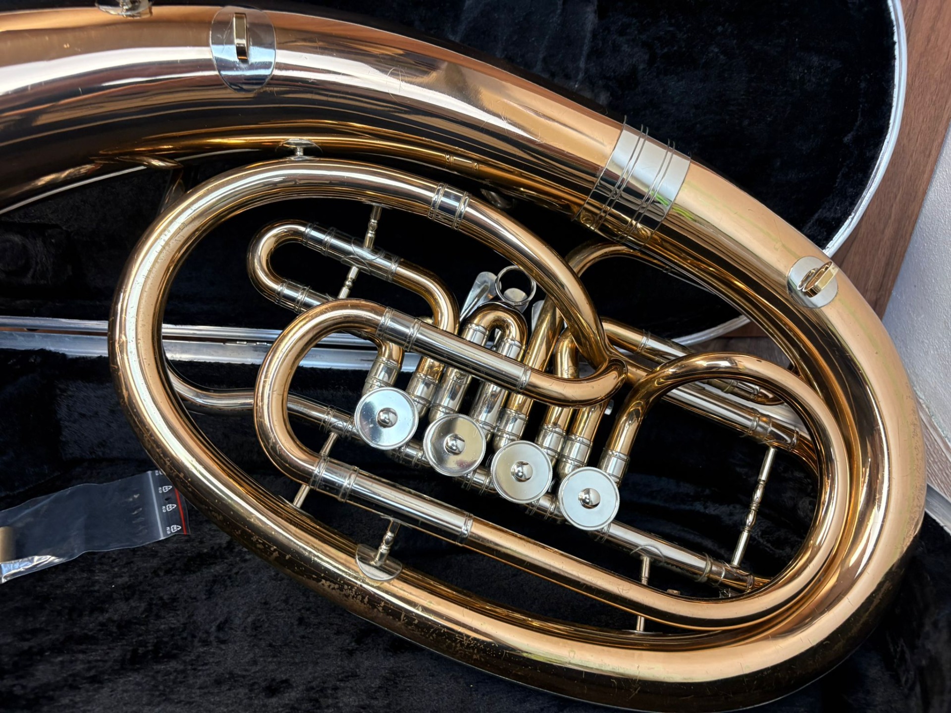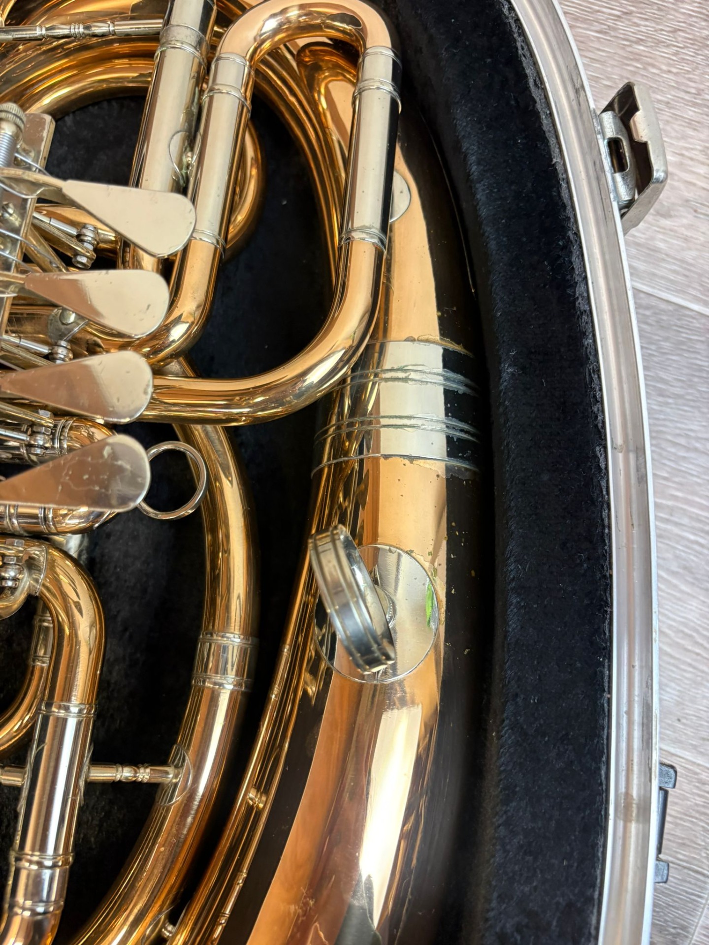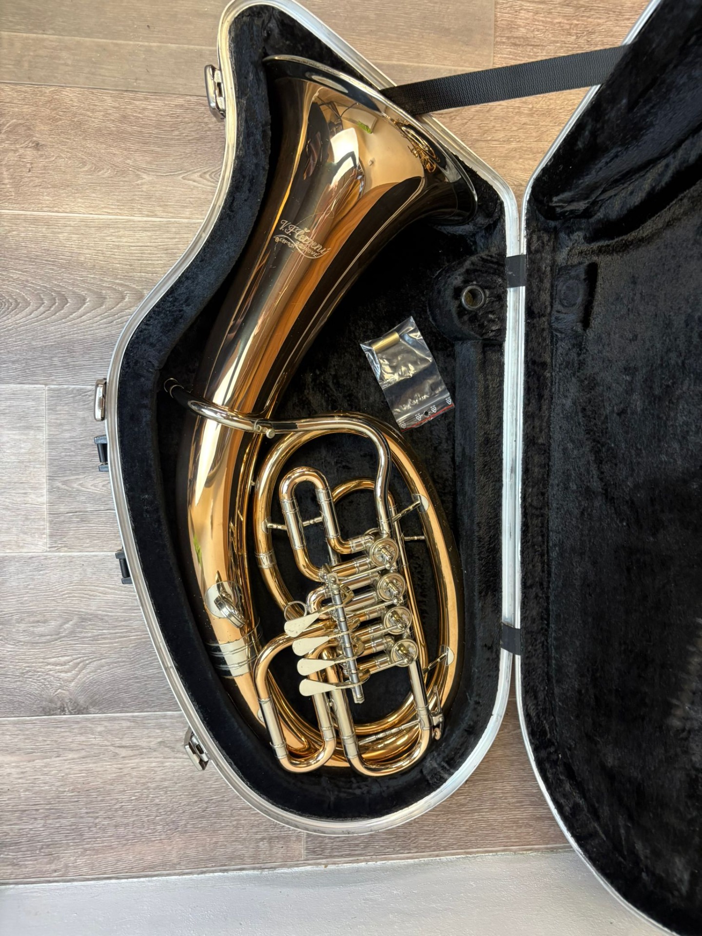 Nástroj je hraný profesionálním muzikantem. Právě prošel profesionálním servisem. Součástí nástroje je pevné pouzdro a redukce na pozounový nátrubek.